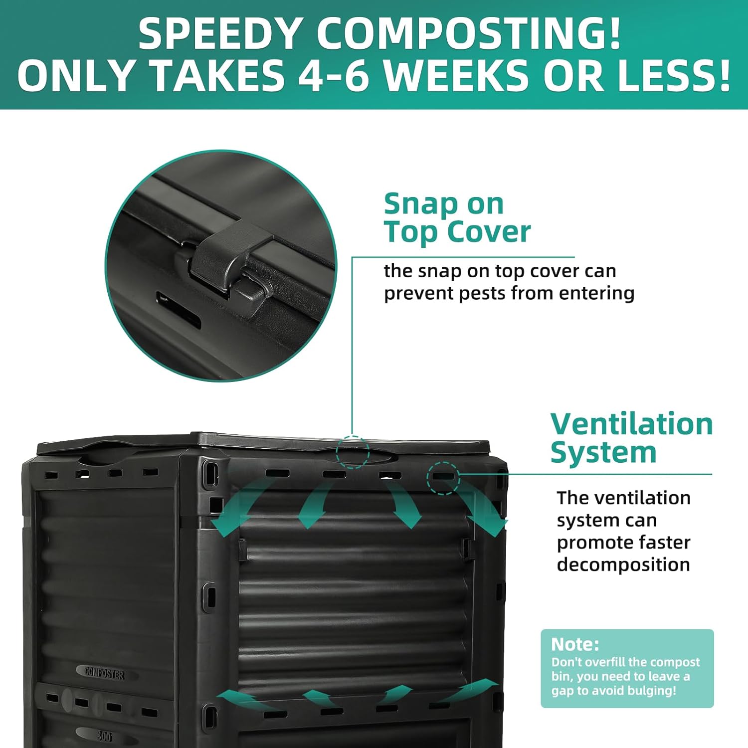 • Quick Assembly & Warranty: Easy to assemble in minutes, this compost bins for outside requires no tools. Backed by a one-year warranty, it’s a durable compost maker for sustainable gardens.