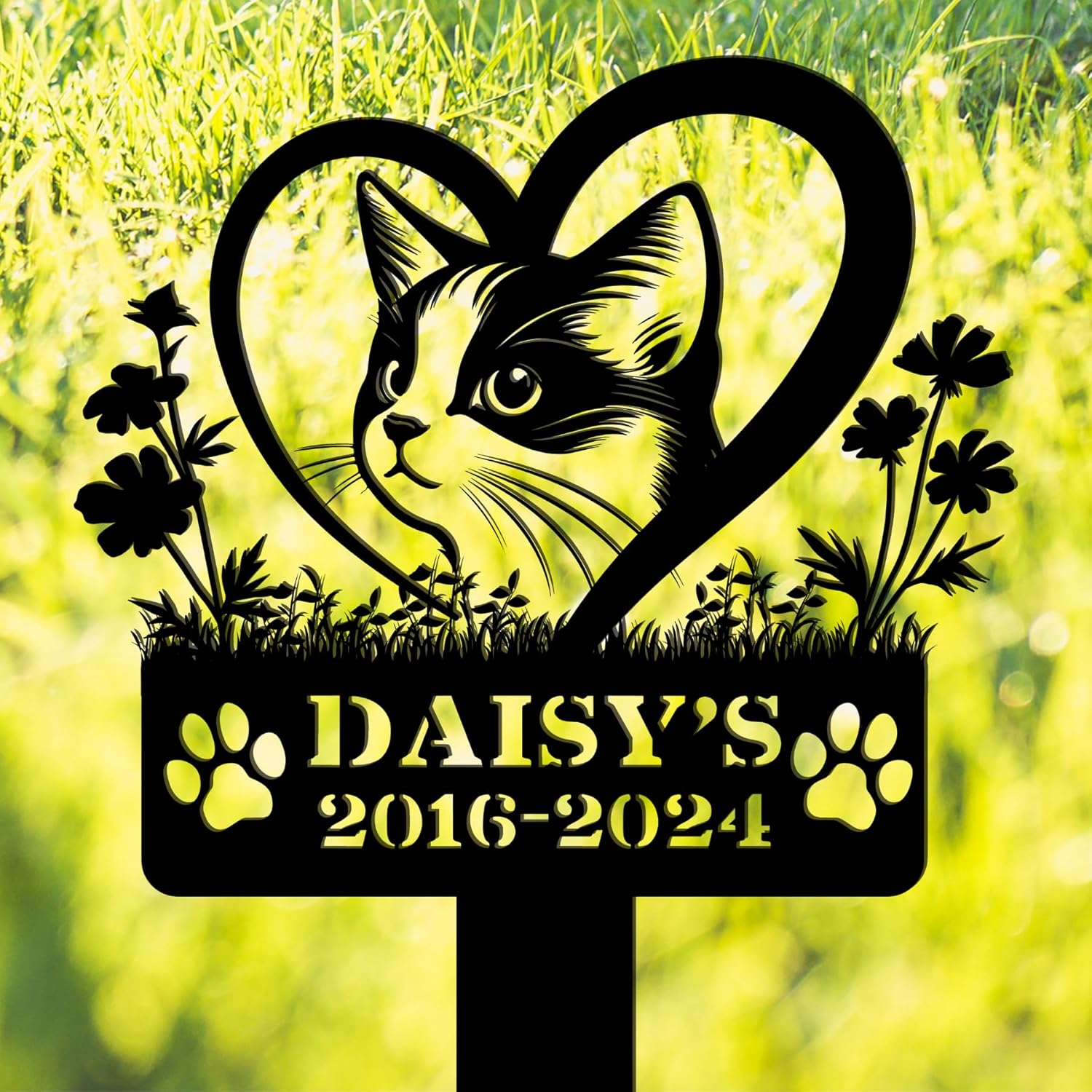 • Elegant Tribute for Outdoor Memorials – Designed in a timeless cat silhouette with a delicate heart and bird detail, this garden sign is more than a pet marker—it’s a work of art that brings comfort and beauty to any resting place or remembrance garden.