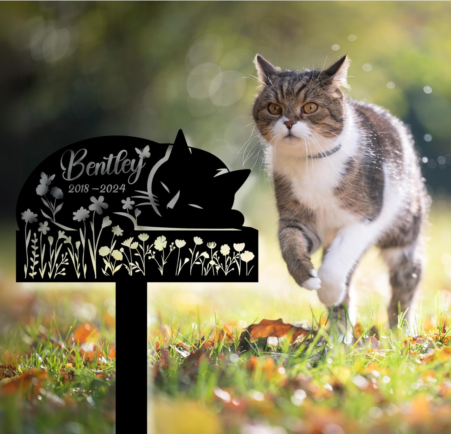 Sleeping Cat Grave Markers Outdoor, Weatherproof Metal Pet Headstone with Name & Date, Outdoor Grave Marker for Cats – Variety of Sizes & Finishes