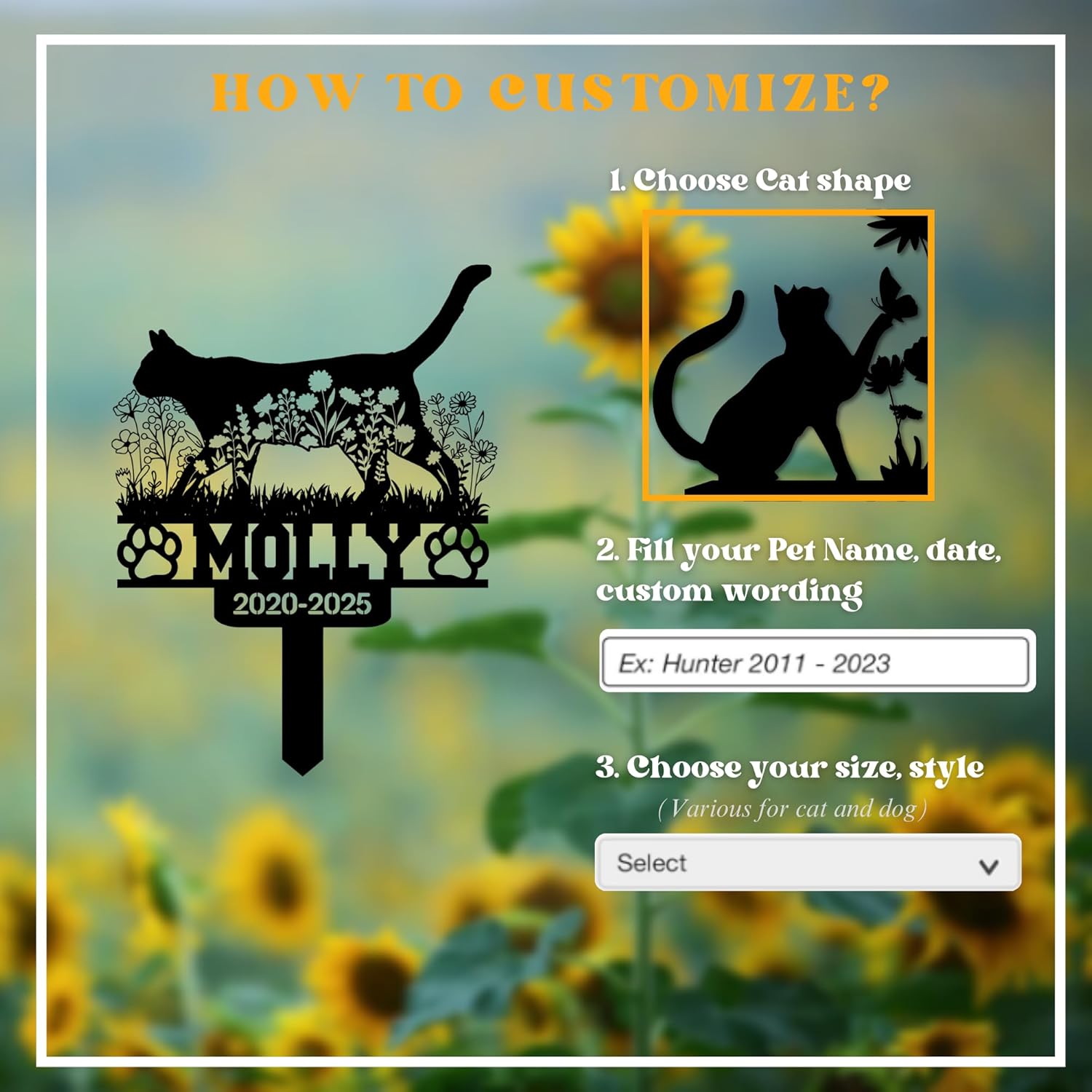 • Durable, Rust-Proof & Fade-Resistant – Our powder-coated metal grave marker is built to endure sun, rain, snow, and wind—keeping your cat’s memory safe and visible season after season.