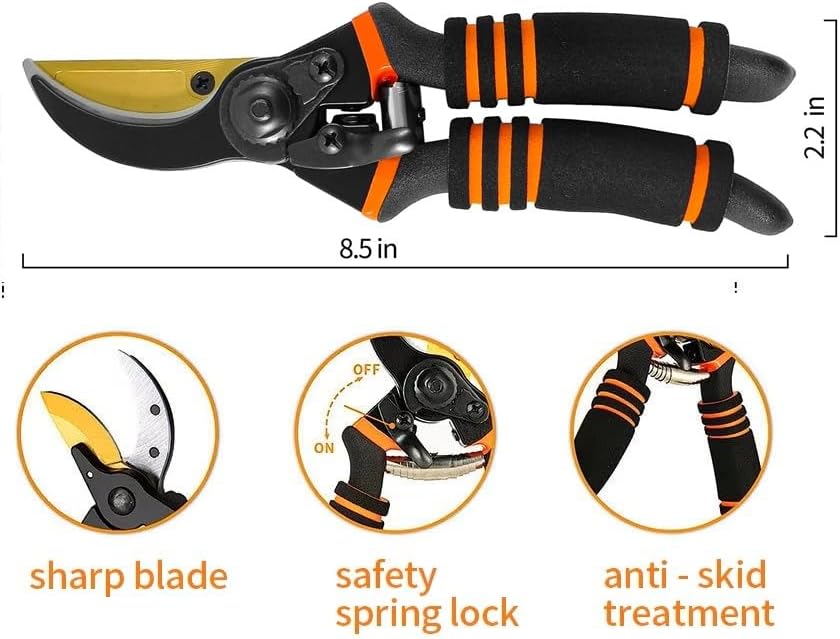 • ๐ŸŒน8.5" Professional Premium SK5 Steel with Titanium Bypass Pruning Shears-Ultra-sharp And Durable,Ergonomically Designed,Versatility Pruners For Gardening,Safe And Easy To Handle