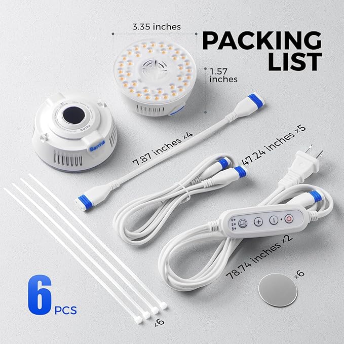 Barrina Orbgrow OG09 Puck Grow Light with Timer, Pinkish White 54W(6 x 9W, 810 Watt Equiv), Full Spectrum Plant Light for Indoor Plants, Magnetic & Linkable, 5 Levels Dimmable for Plant Shelf, 6 Packs