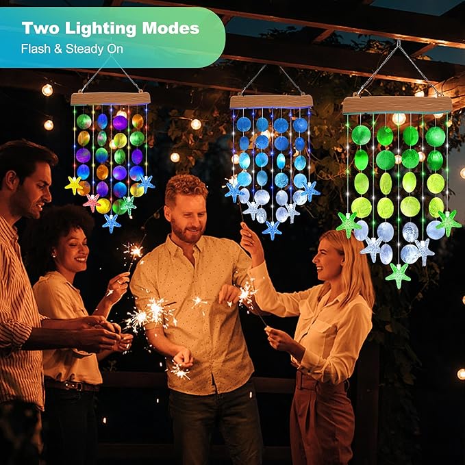 - ๐CRAFTED FROM NATURAL SEASHELLS - Our solar decorative lights outdoor is made from natural seashells glass, hang it in your porch, window, backyard, garden or patio, as breeze blowing, it transports you to the beach with its authentic seashell sounds, enjoy the refreshing feeling of the ocean breeze at home. It's a great gift for friends and family that will bring them comfort during times of loss