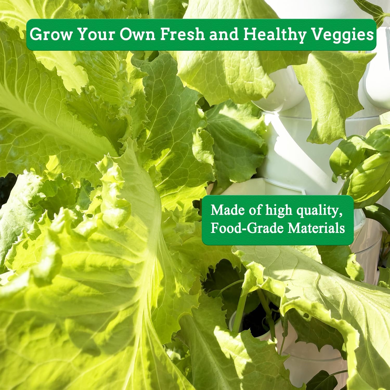 • What's in the box: The vertical hydroponic tower is made of food-grade plastics that are BPA-free and comes with tower section x6, 10L water tank x1, timer x1, water pump x1, power adaptor x1, water level gauge x1, foldable funnel x1, filter x1, hose x1, shower cap and shower cap lid x1, manualx1 and growth spongex64. Serving you is our biggest purpose. If you have any questions about the product, please contact us at any time. Our technical team will solve the problem for you within 24 hours