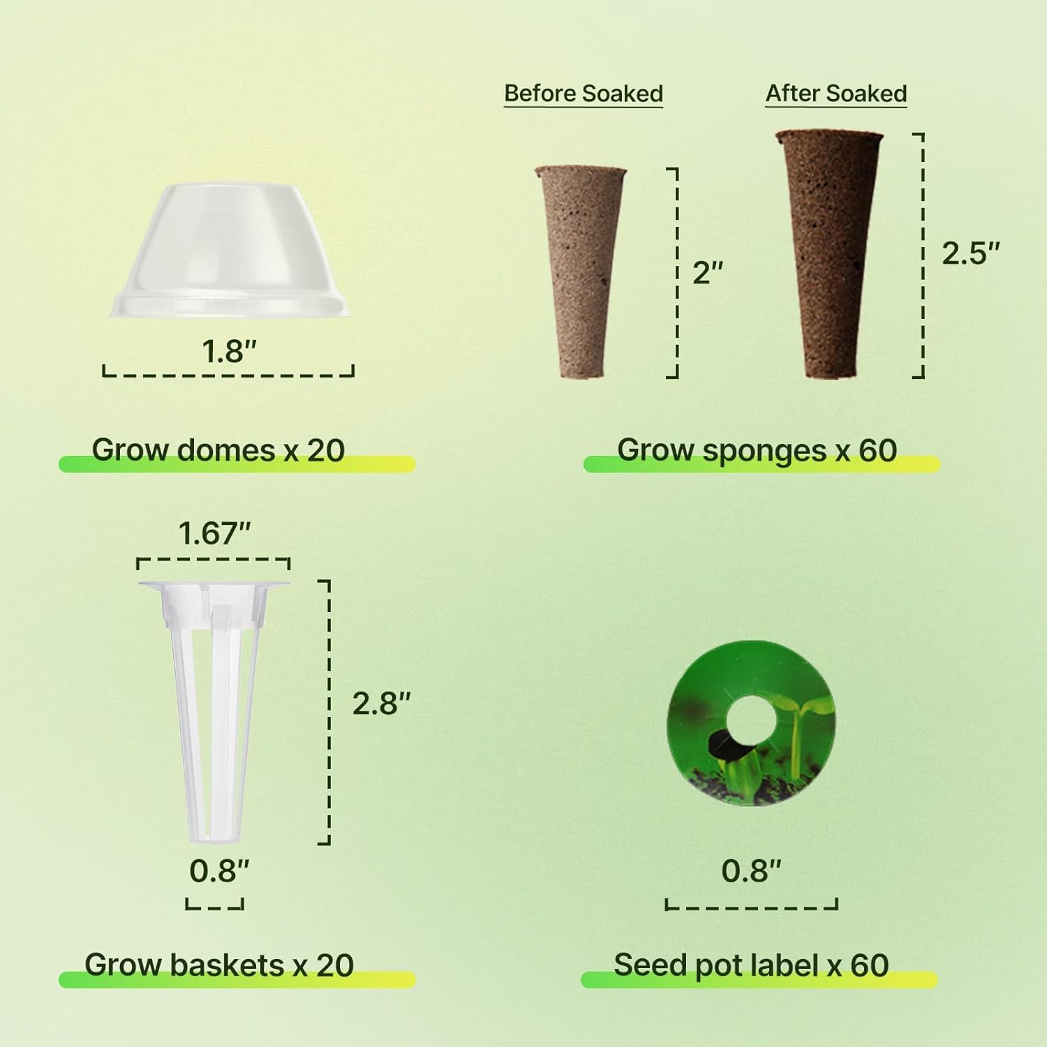 • 160pcs Gardening Supplies: This value-packed set includes essential accessories to kickstart or replenish your hydroponics growing system kit: 20 grow baskets, 60 grow sponges, 20 grow domes, and 60 pod labels—ideal for both beginners and experienced hydroponic growers. Please note: seeds and plant nutrients are not included.