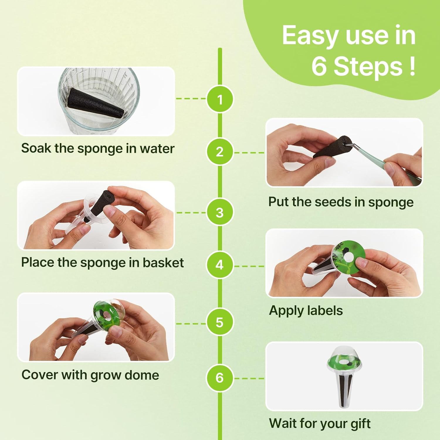 • Easy to Use:Simply insert the sponge into the basket, plant your seeds, and cover with the dome. The included 60 plant support stickers feature a hollow circular design, allowing seedlings to grow through the center while providing gentle support to keep plants upright as they mature.