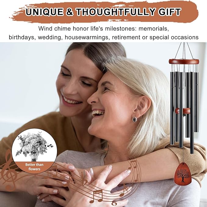 Wind Chimes for Outside, 32" Memorial Wind Chimes for Loss of Loved One Mother Father, Memorial Sympathy Gift Outdoor Garden Patio Decor, Bereavement Gift for Loss of Mom Dad (Classic Black)