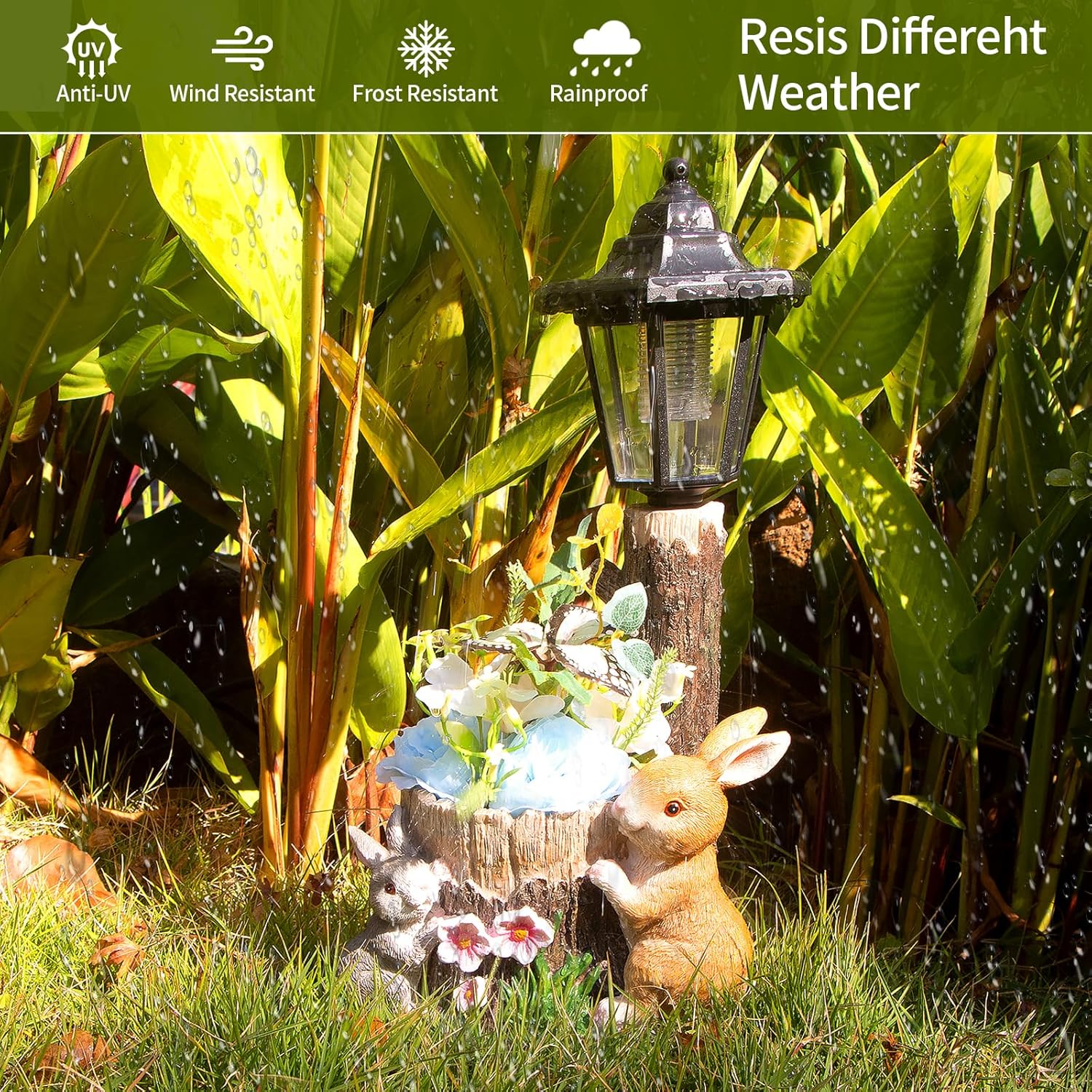 • High-Quality Materials: Our rabbit garden statue is crafted from durable resin, making it is waterproof, and fade-proof. Finished with a UV-resistant coating, the solar garden ornaments are built to withstand various weather conditions, ensuring they remain a long-lasting addition to your garden.
