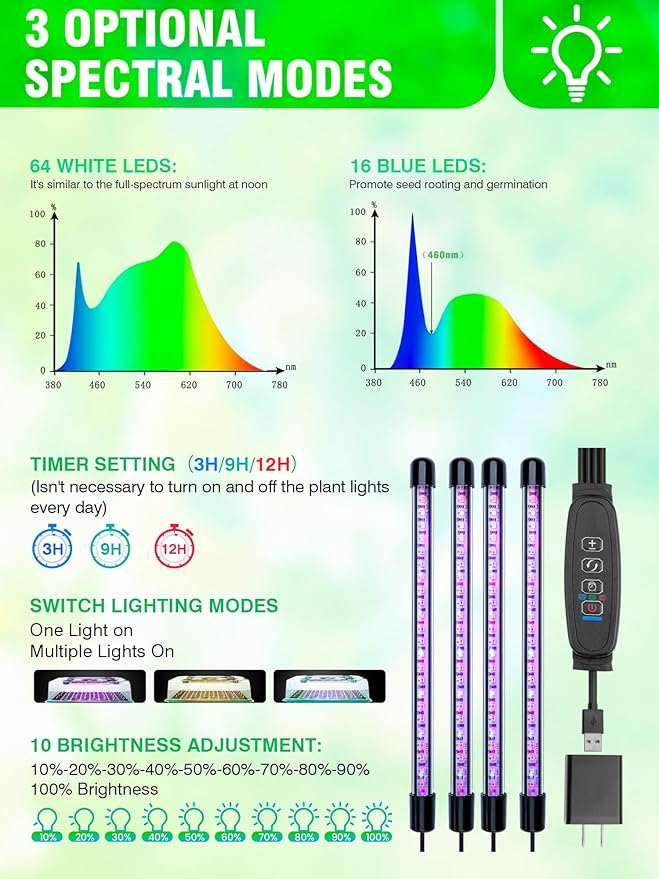 • EMBEDDED ADJUSTABLE LED PLANT GROW LIGHT: Equipped with 48 high-efficiency beads per seedling tray, these LED strips simulate natural sunlight for optimal seedling growth. With adjustable brightness and timer functions, it meets the light conditions your plants need most at different stages, promoting faster, healthier growth.