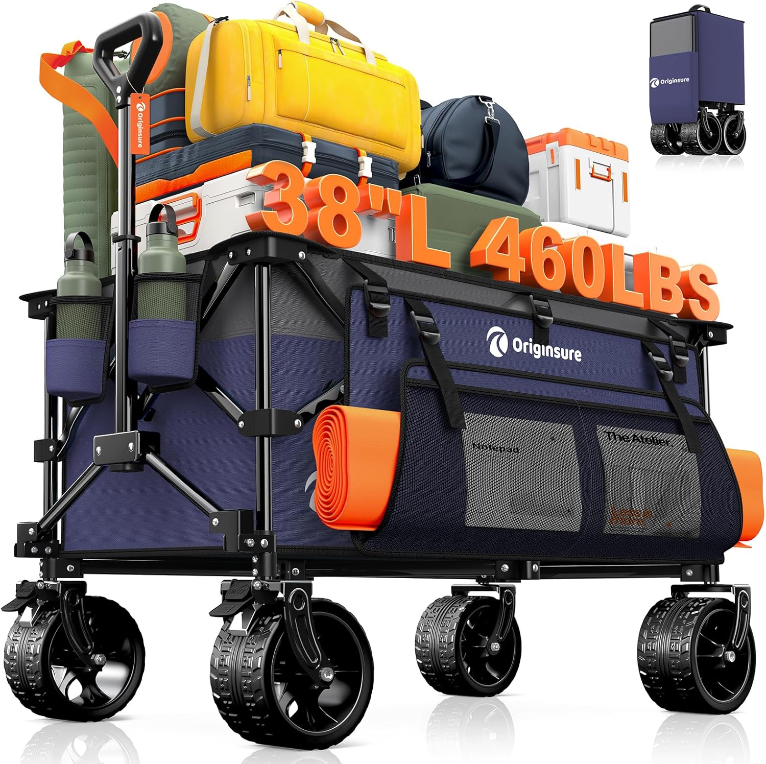 - 【𝟳.𝟲𝟵 𝗰𝘂 𝗳𝘁 𝗟𝗮𝗿𝗴𝗲 𝗖𝗮𝗽𝗮𝗰𝗶𝘁𝘆 𝘄𝗶𝘁𝗵 𝗦𝗺𝗮𝗹𝗹𝗲𝗿 𝗙𝗼𝗹𝗱𝗲𝗱 𝗦𝗶𝘇𝗲 𝗣𝗼𝗿𝘁𝗮𝗯𝗹𝗲 𝗖𝗼𝗹𝗹𝗮𝗽𝘀𝗶𝗯𝗹𝗲 𝗕𝗲𝗮𝗰𝗵 𝗪𝗮𝗴𝗼𝗻】Originsure foldable wagon cart, 37.40 "L x 24.21 "W x 24.00 "H large unfolding size, 7.69 cu ft/220L massive storage space, double the capacity of similar wagons. Adopting an innovative folding design that maintains its height, the Capacity reduces to 1.36 cu ft when folded, only 1/3 of other carts. Compact and space-saving, it can be perfectly stored in the car trunk and room corners.