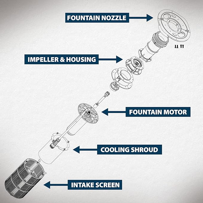 • Energy Efficient Design -- Designed and built for superior performance and long-lasting durability. An oversized intake screen prevents clogging, for uninterrupted fountain viewing enjoyment.