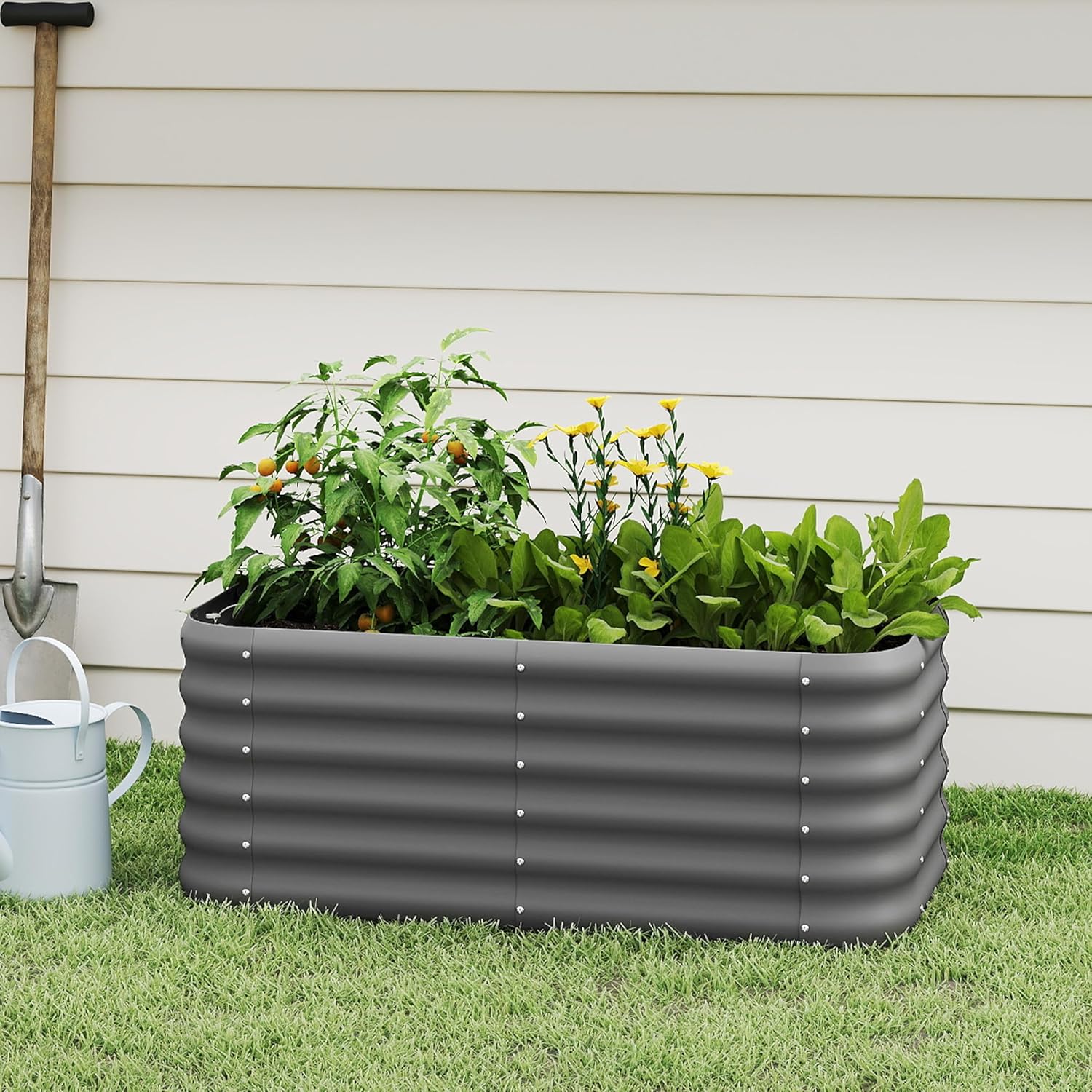 DDK Galvanized Raised Garden Bed, Outdoor Planter Bed, 4x2x1.5ft Metal Planter Box for Gardening and Planting,GD