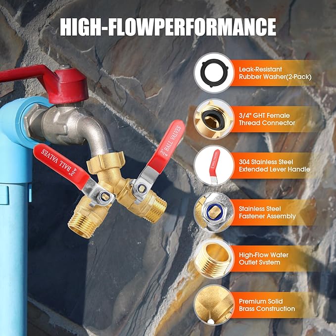 • 【Premium Rust-Proof Materials】 Crafted from **solid brass core + 304 stainless steel, this hose splitter resists corrosion & rust even in harsh weather, ensuring 10X longer lifespan than plastic alternatives. ✅