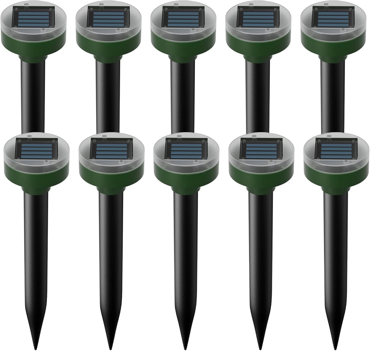 Mole Repellent 10 Pieces,Solar Powered Mouse Repellent Waterproof Rodent Gopher Repellent,360° Mouse Control Outdoor Mole Repeller for Garden Yard & Patio,Green