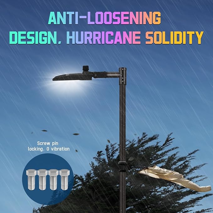 • Perfectly Matched Mounting Brackets: 4.07 lbs, extremely sturdy, capable of supporting a heavy-duty parking lot light. The top-extended mounting arm increases the illumination area by 40%, eliminating darkness