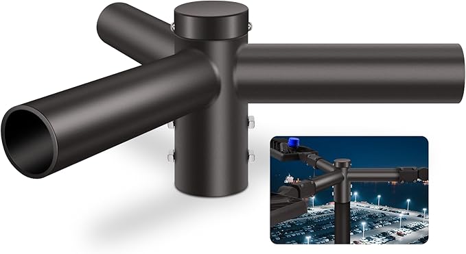 • RELIABLE UPGRADE: The spoke-extended mounting arm effortlessly supports 3 parking lot lights. The mounting bracket arm extends uniformly at 120° from different directions, enabling 360° seamless lighting coverage for parking lot layouts. Hollow tube design hides hardwiring inside, reducing damage from external forces and simplifying wiring, making it an ideal partner for parking lot light upgrades