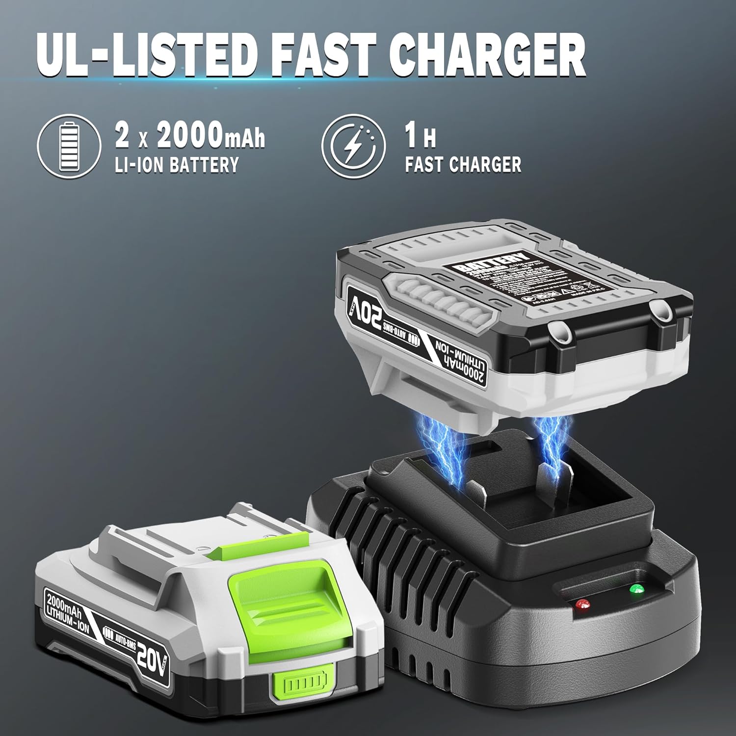 • Package Included: 1* Cordless String Trimmer, 1* Fast Charger, 2 * 2.0Ah Lithium-Ion battery, 1* User Manual,6* Replacement line