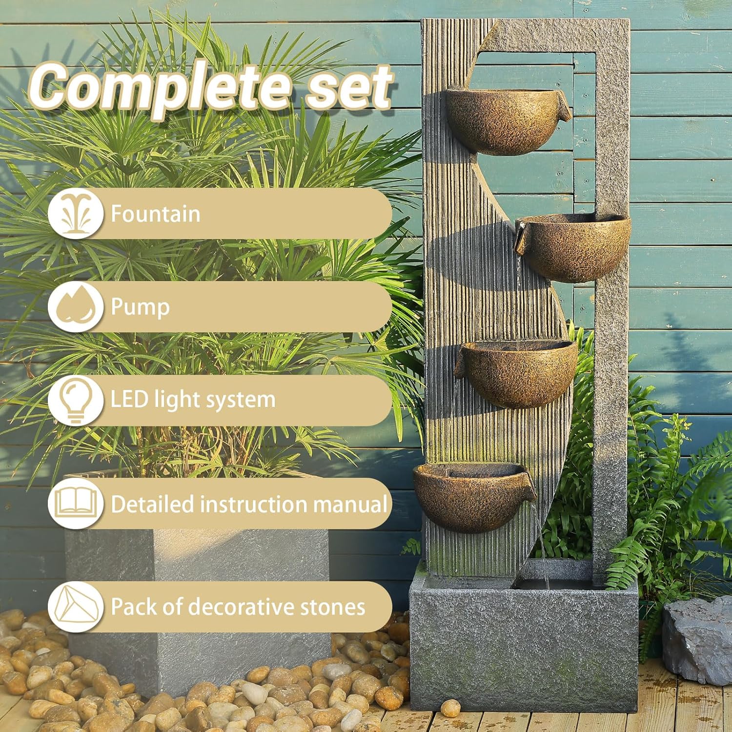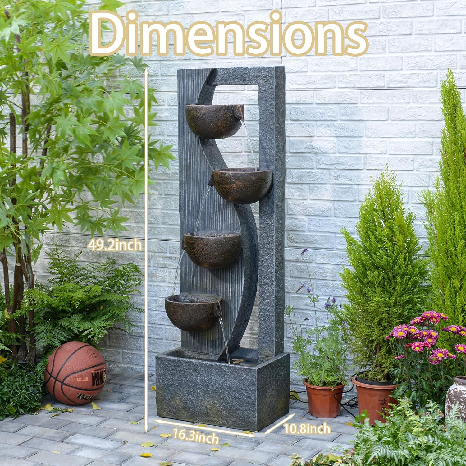 • 【5-Tier Cascading Waterfall Fountain】 Experience serene relaxation with this 49.2" outdoor water fountain featuring gentle cascades that produce authentic waterfall sounds. Perfect for gardens, patios and backyards.