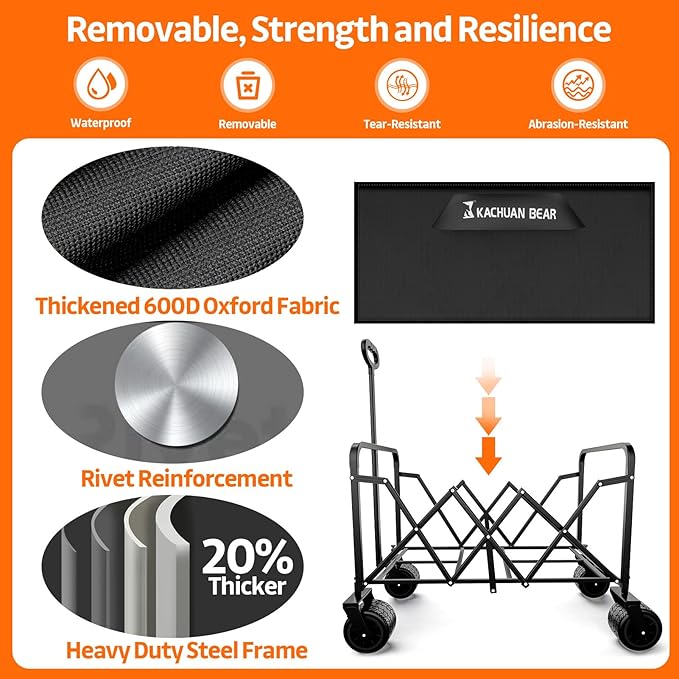 - Multipurpose Collapsible Powerhouse:From sandy shores to backyard BBQs, this foldable wagon excels everywhere! Perfect as a beach wagon with big wheels for sand, camping cart, or grocery hauler, it tackles diverse tasks effortlessly. Gift this collapsible wagon to adventure lovers—its one-year warranty and 24/7 support guarantee peace of mind. Redefine mobility with wagons carts built to conquer life’s heaviest loads!