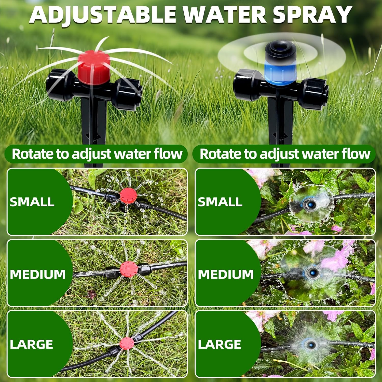 • 【New Upgrade Quick-Connectors Save Your Time】: Our irrigation system features a new upgrade quick connector design that automatically locks and seals, say goodbye to the trouble of heating pipes, making installation a breeze. you just connect the components and you can easily start watering your garden. this user-friendly design ensures that you can quickly set up the irrigation system and save your time