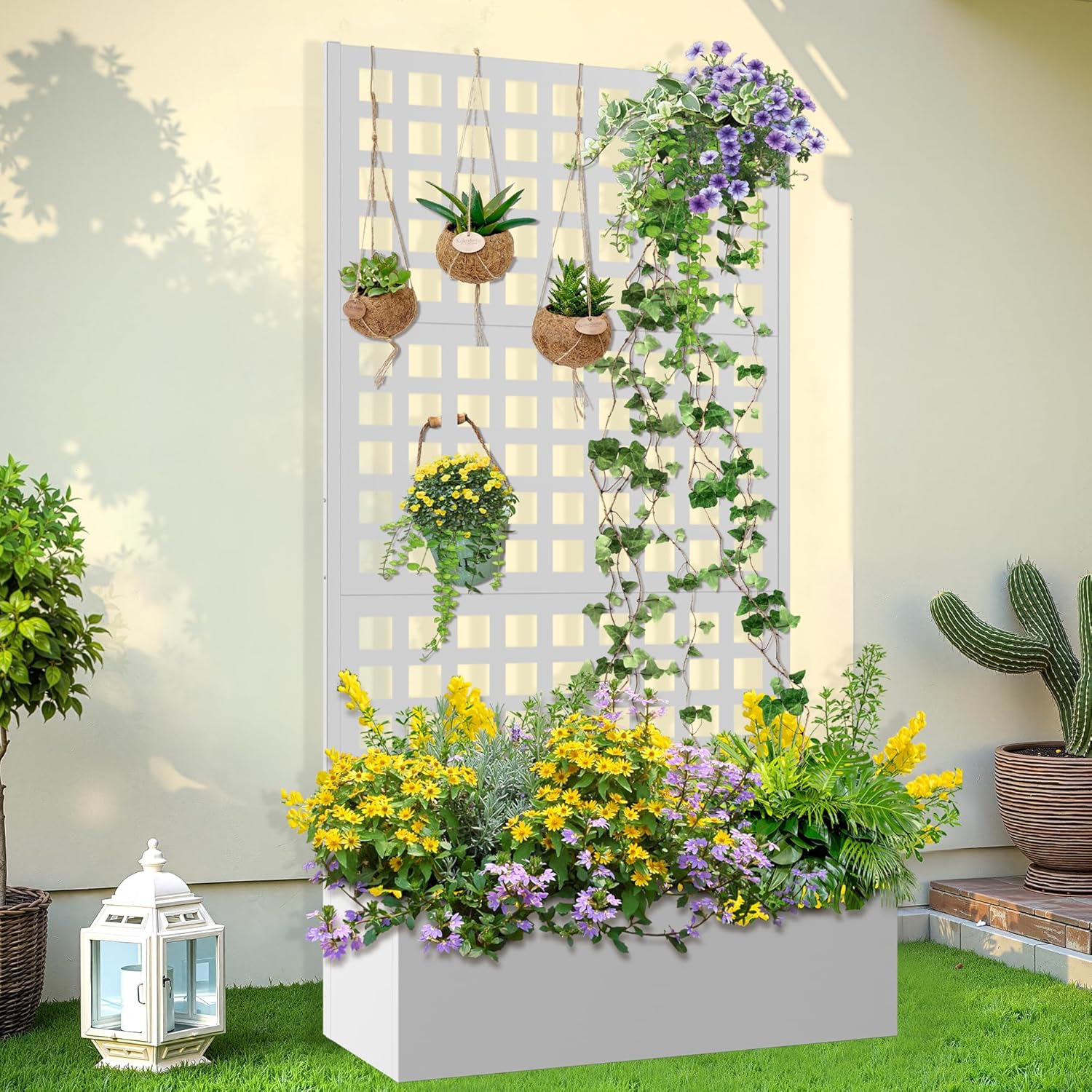 • Suitable for Various Environments This planter with trellis is ideal for gardens, balconies, patios, and greenhouses, perfect for growing flowers, fruits, vegetables, and herbs. It also serves as an privacy planters for patio, creating a tranquil space. Ideal for beautifying your area or enhancing privacy.