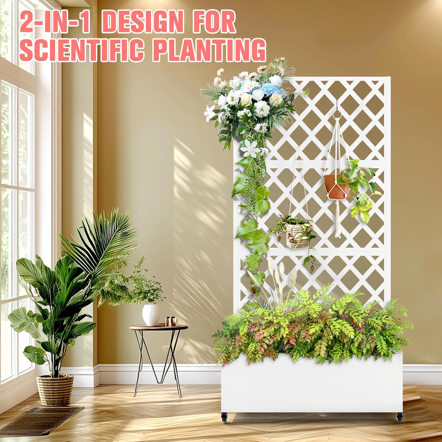 • 🌸 Elegant Privacy & Functional Use Not just decorative, this garden planter with trellis also serves as a privacy screen or outdoor divider. As a planter with trellis, it’s perfect for climbing plants like roses or vines, and as a planter box with trellis, it adds style and separation to any space.
