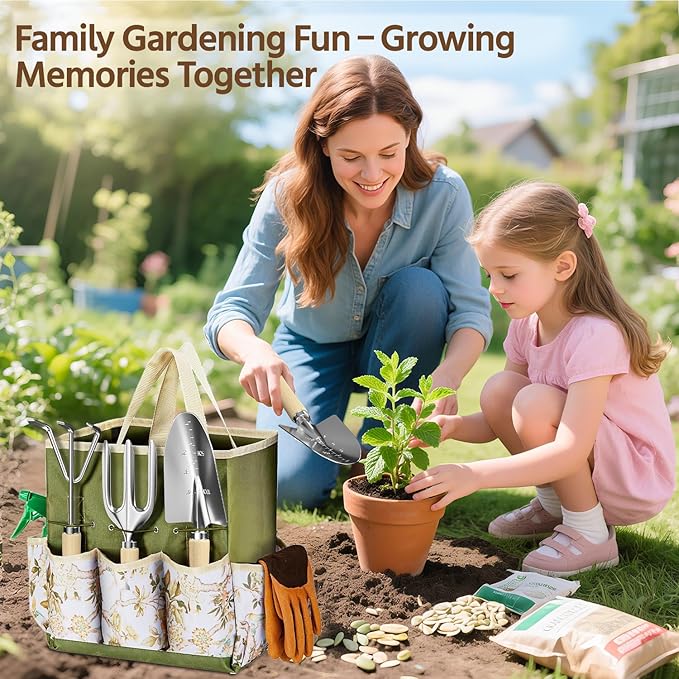 - 【Gardening Fun for the Whole Family】The garden tools are designed to be both strong and lightweight, making them easy for anyone to carry and use. From young eager to dig in the dirt to grandparents sharing their wisdom, everyone can join in and enjoy the simple pleasure of gardening together.