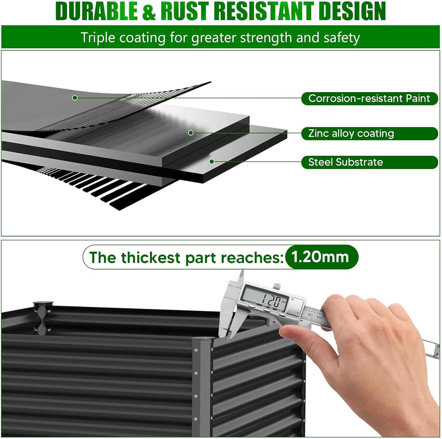 • 【Premium Heavy-Duty Raised Garden Bed】– Designed for gardeners who demand durability and functionality, our raised garden bed can hold up to 118 gallons of soil, providing ample space for plants to thrive. Constructed from reinforced heavy-duty galvanized steel, it is twice as heavy as standard garden beds, ensuring superior strength and longevity. Built to withstand extreme weather conditions, it won’t warp, crack, or rust over time.
