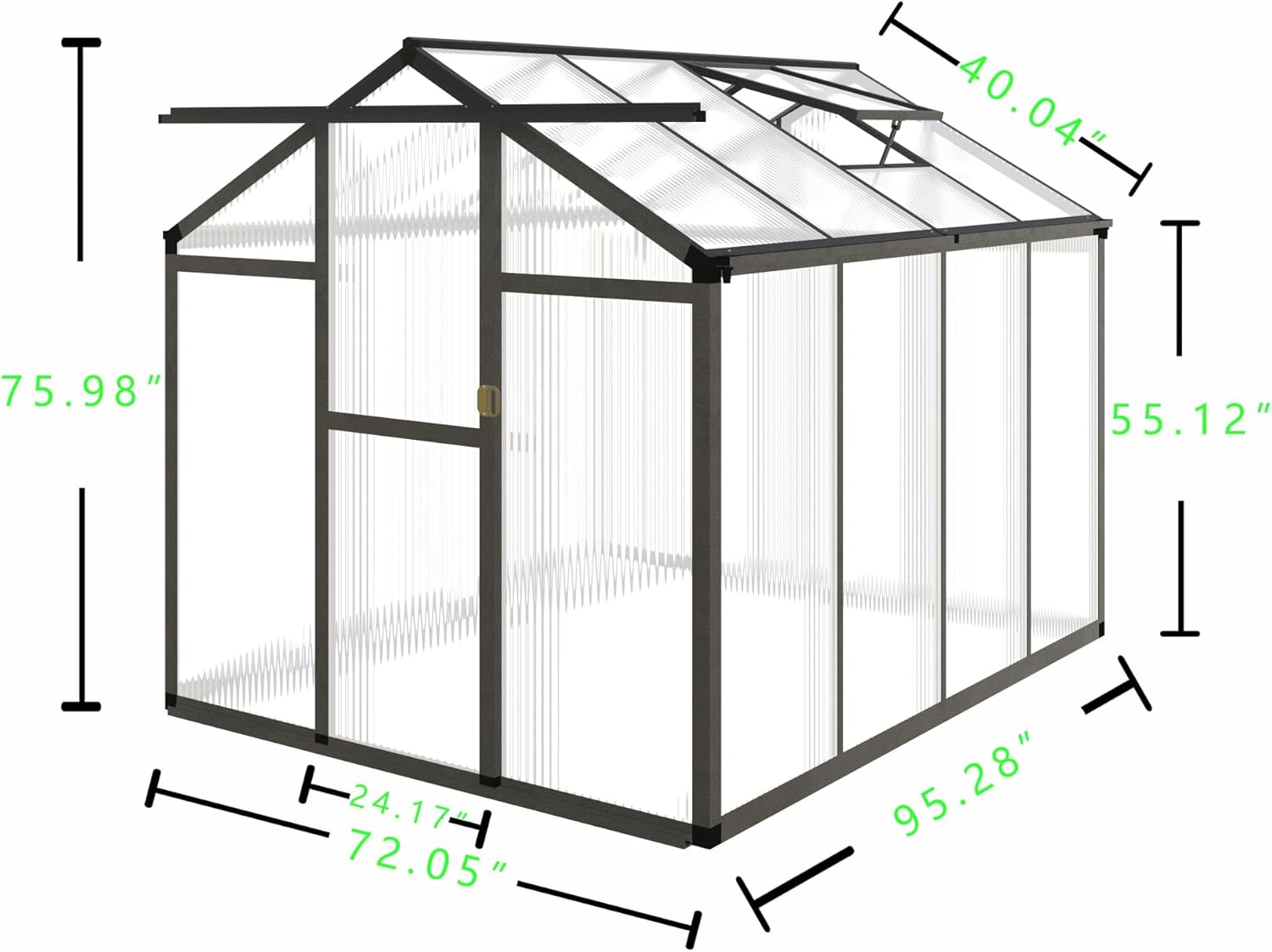 CQZY 6x8 FT Greenhouse for Outdoors,Walk-in Greenhouse for Outdoors,Dark Gray