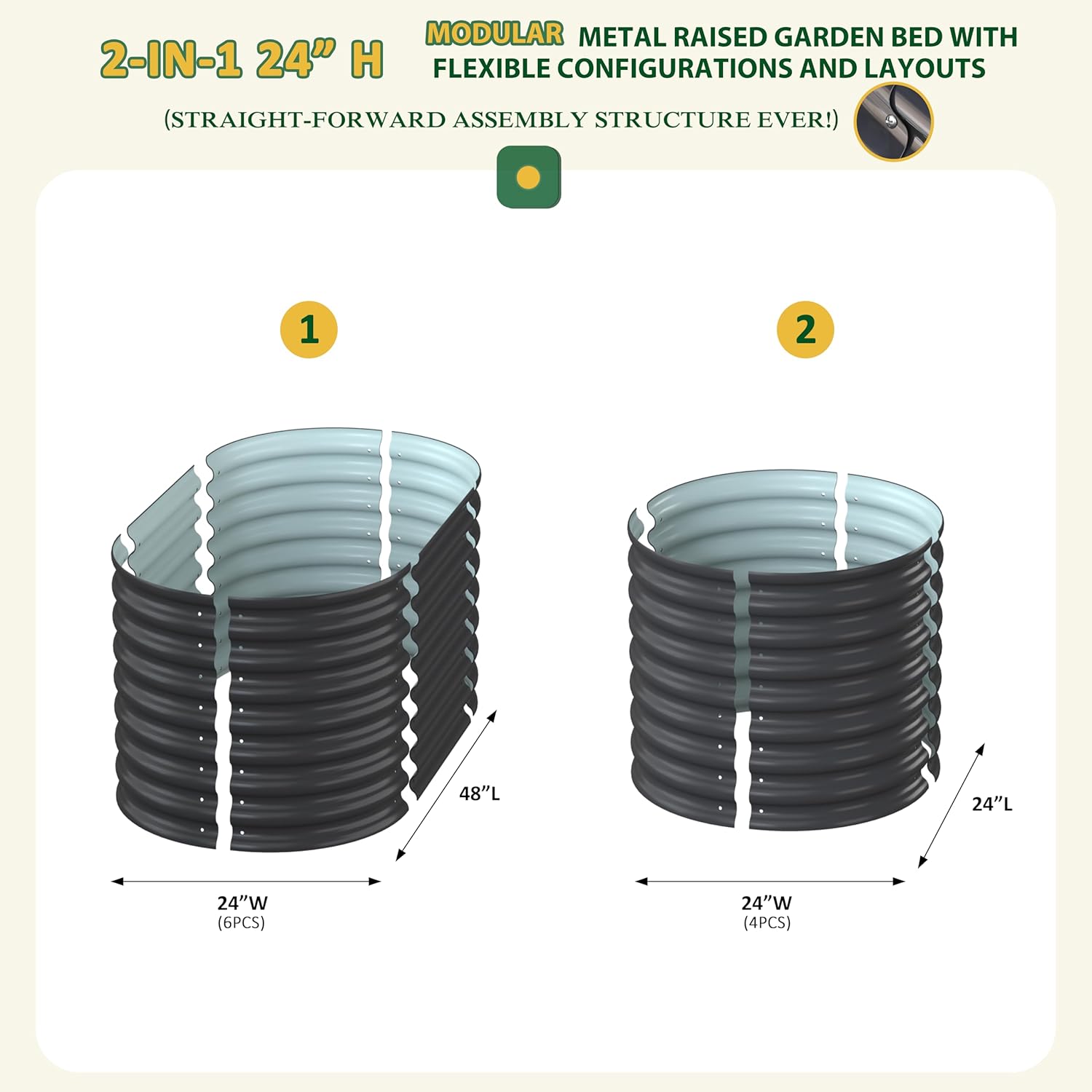 MUPATER 24” Raised Garden Bed, 2-in-1 Raised Garden Bed, 304 Stainless Steel Garden Bed, 4×2×2FT Modular Raised Planter Box Outdoor for Flowers, Vegetables, Grey