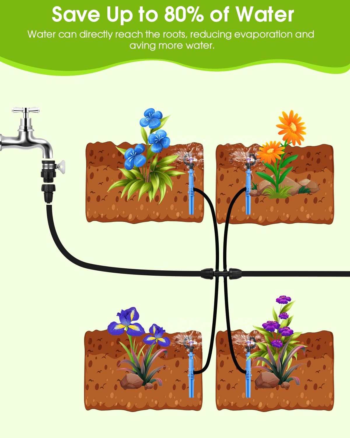 • Save Your Time&Water: Just turning on the faucet, the irrigation system can automatically deliver water to plants' roots slowly and precisely, and can save up to 70% of water, which is great for saving water in drought conditions.