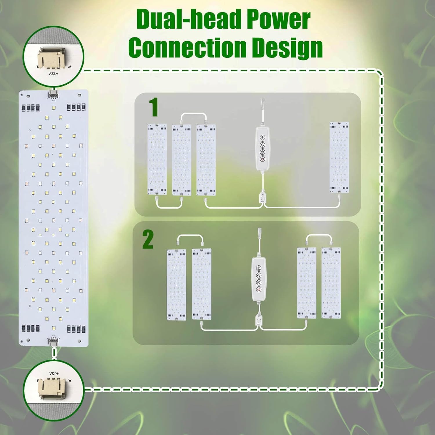• 2 Ways Flexible power Connection : The LED Grow Light has 4 ultra-thin panels adoption of two power connection heads design allows you install the grow light strip serially or parallelly from 1PC to 3PCs.
