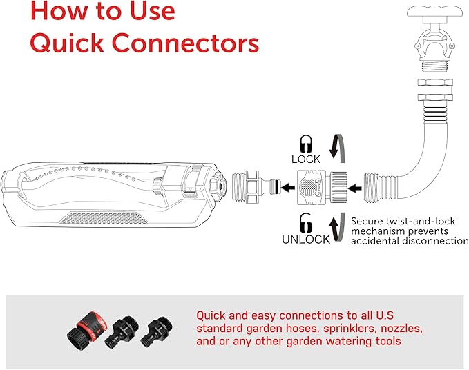 • QUICK CONNECT STARTER SET – Secure water-stop feature allows you to easily switch between tools like sprinklers and nozzles without shutting off water
