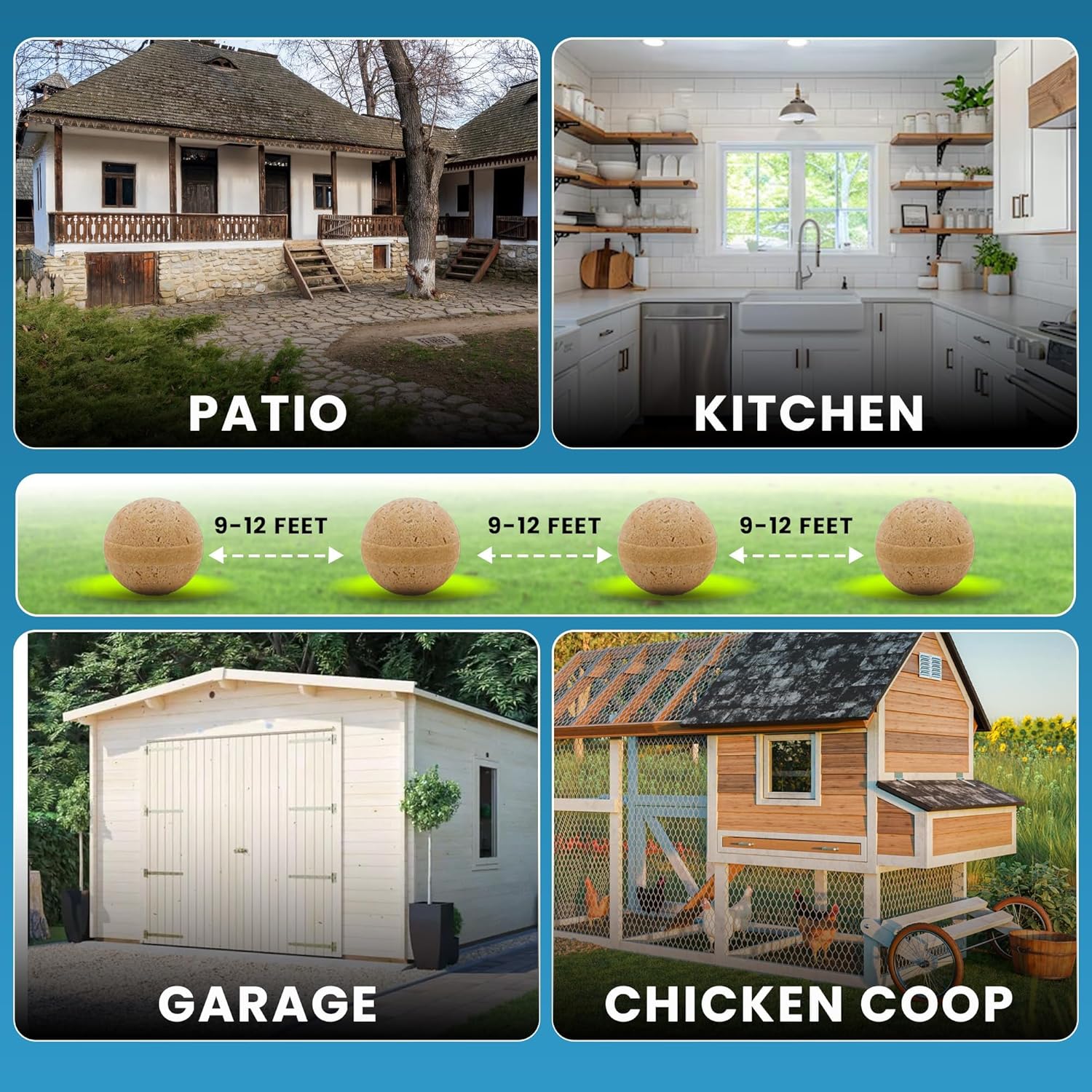 • Protect every corner of your space with this ready-to-use 24-pack. Simply place the repellent balls in entry points, drawers, under sinks, or near signs of rodent activity. Each ball lasts up to 60 days replacing every 30 days for max protection, giving you long-term rodent protection with zero cleanup. Great for indoor and outdoor use.