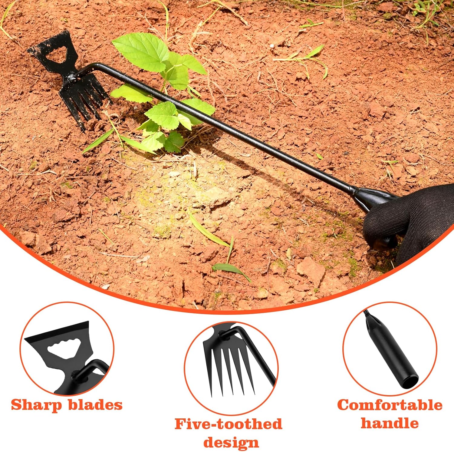 • ๐ŸŒฟใ€Premium Quality Materialใ€‘The four-tooth uprooting weeding tool is made of high-quality anti-rust thick stainless steel, sharp and wear-resistant, with high hardness, and a polished surface that is not sticky to the hand. It also has high impact resistance and tensile strength it effortlessly breaks through the ground.
