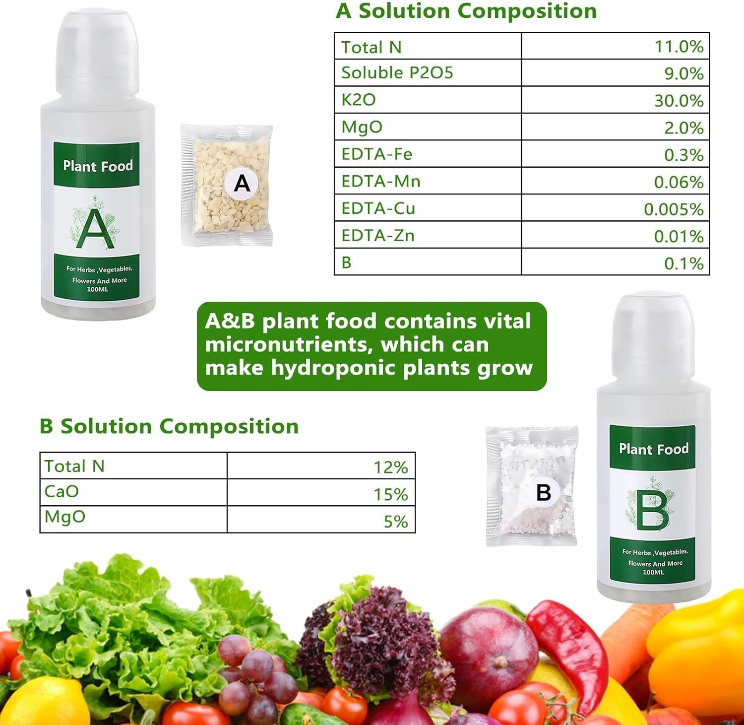 • 🍃High-quality Materials: The minerals in the planting sponge create a healthy root environment for plants. The planting basket and dome are made of high-quality plastic material, which is tough, does not deform, and can be reused after cleaning. A&B plant fertiliser contains important trace elements that make the root system grow stronger and faster. The pod label is made of PVC material, which is sticky and does not fall off easily.