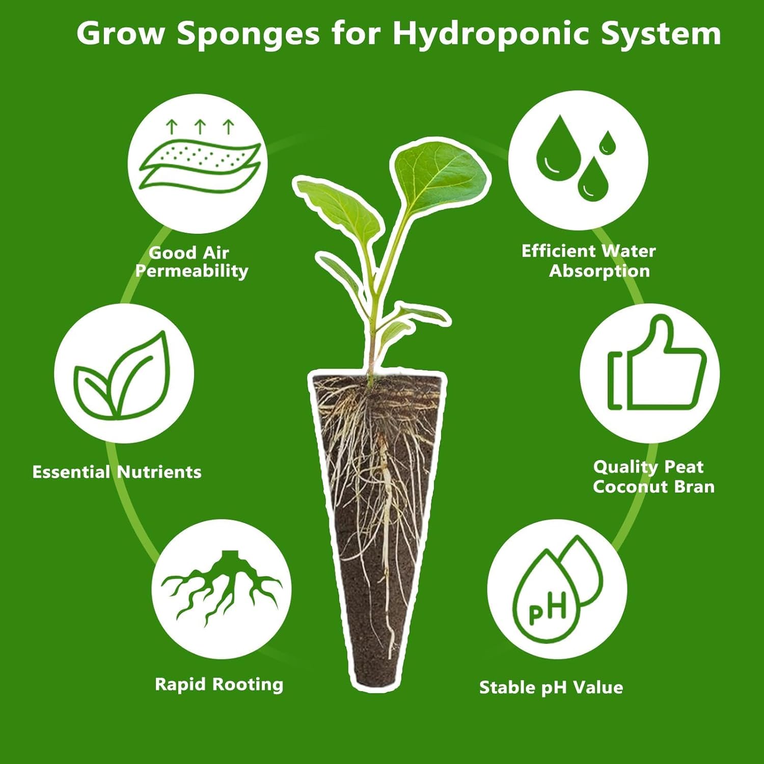 • 🍃Easy to use: The hydroponic growing sponge is very dry when received and can be stored for a long time. Before use, you can soak the sponge in clean water for a few minutes. Once the sponge has fully absorbed water and expanded, it is ready for use. Place the seeds in the holes of the growing sponge, then place it in an indoor hydroponic gardening system, and wait for germination.