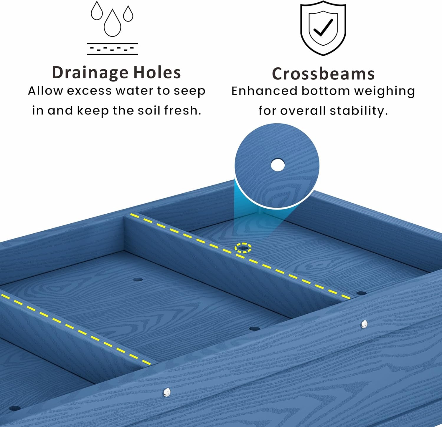 • Premium Materials: Crafted from durable HDPE, this outdoor elevated planter box resists common issues found in traditional wooden, ceramic, or metal planters—such as rotting, cracking, and rusting, year-round weather resistance