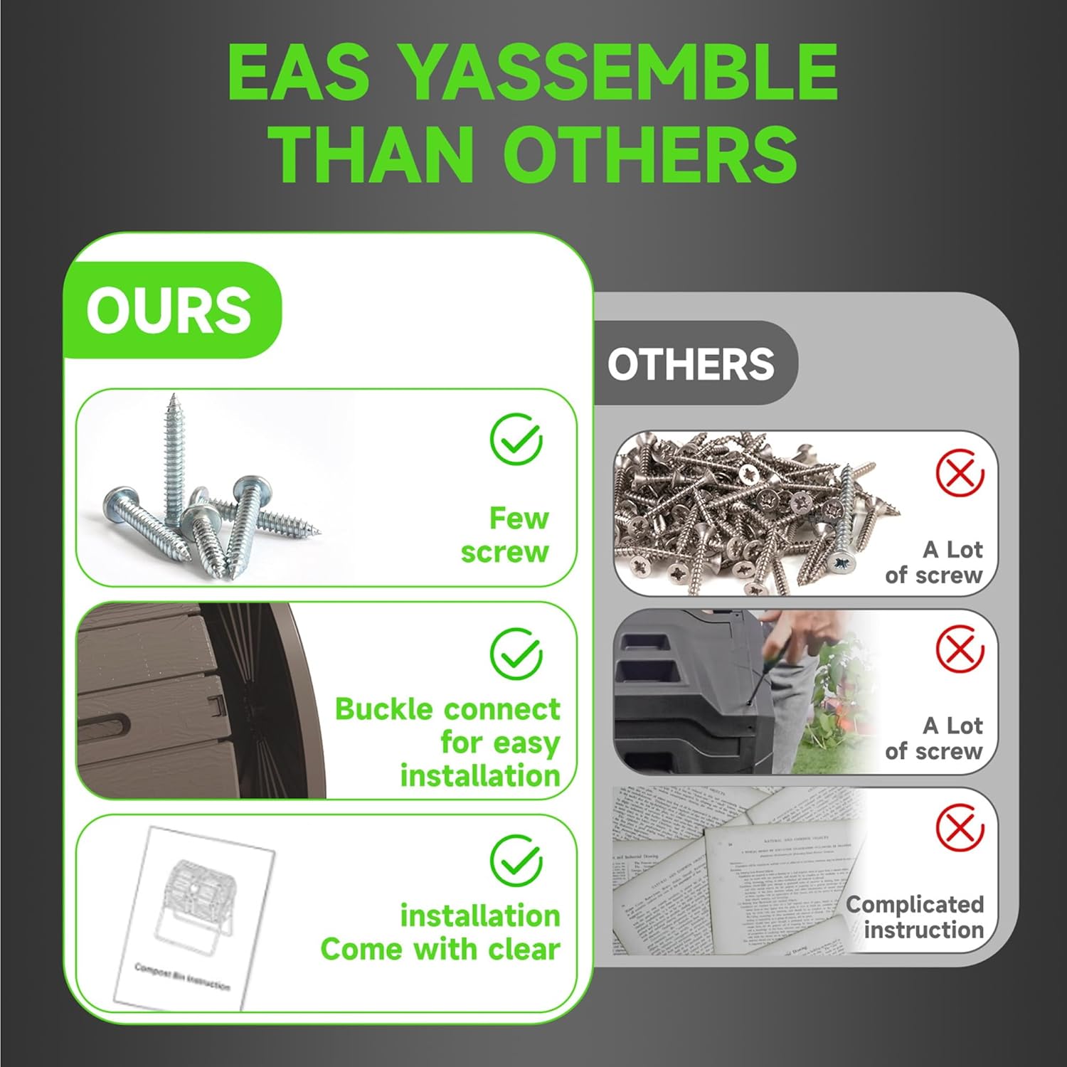 • Rapid Decomposition Tech:Patented internal fins break down scraps 2x faster than basic compost bins.