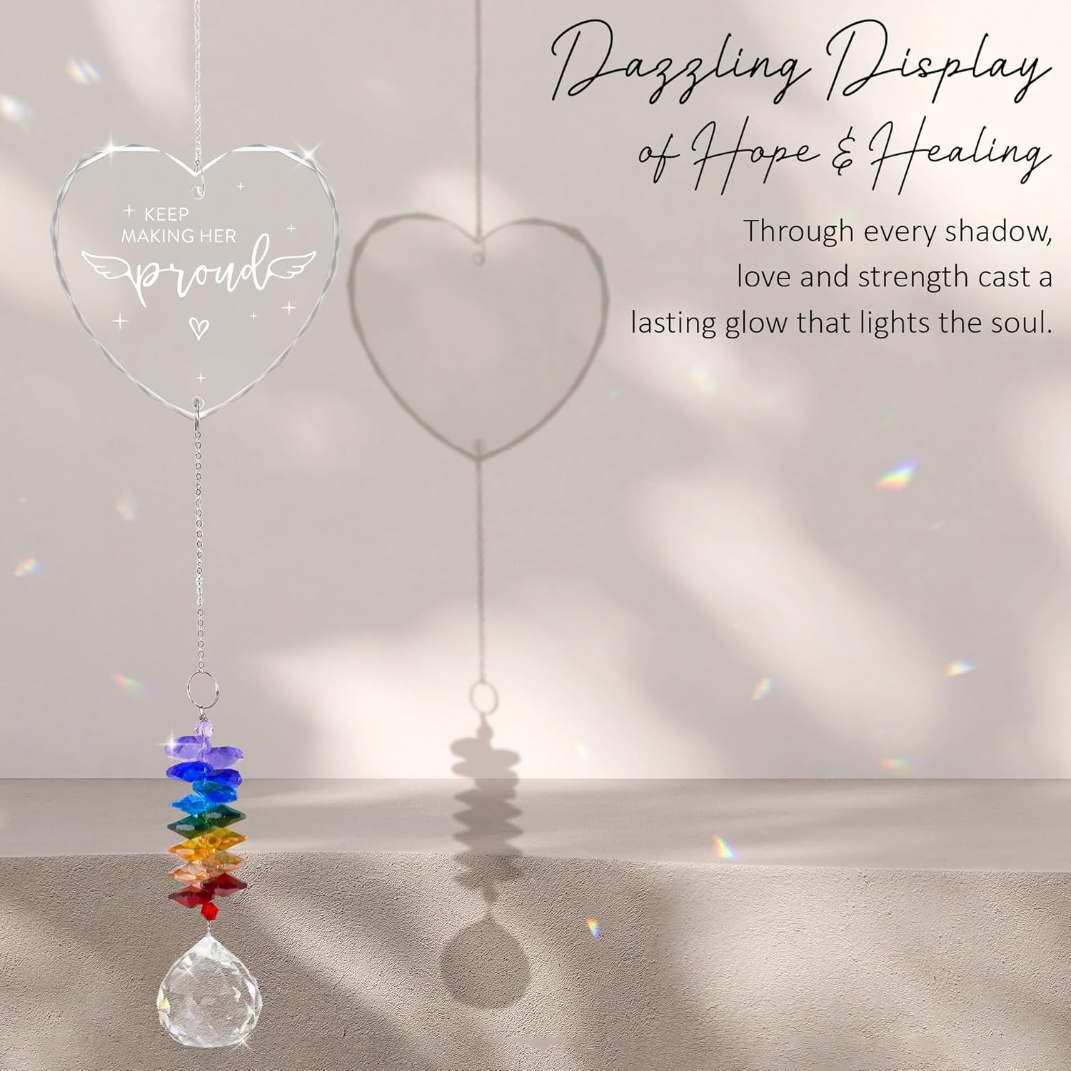 • ๐ŸŒˆ Rainbow Crystal Healing: Crafted with sparkling crystals that reflect sunlight into rainbow hues, this Memorial Rainbow Maker offers a peaceful ambiance and comforting presence in any space.