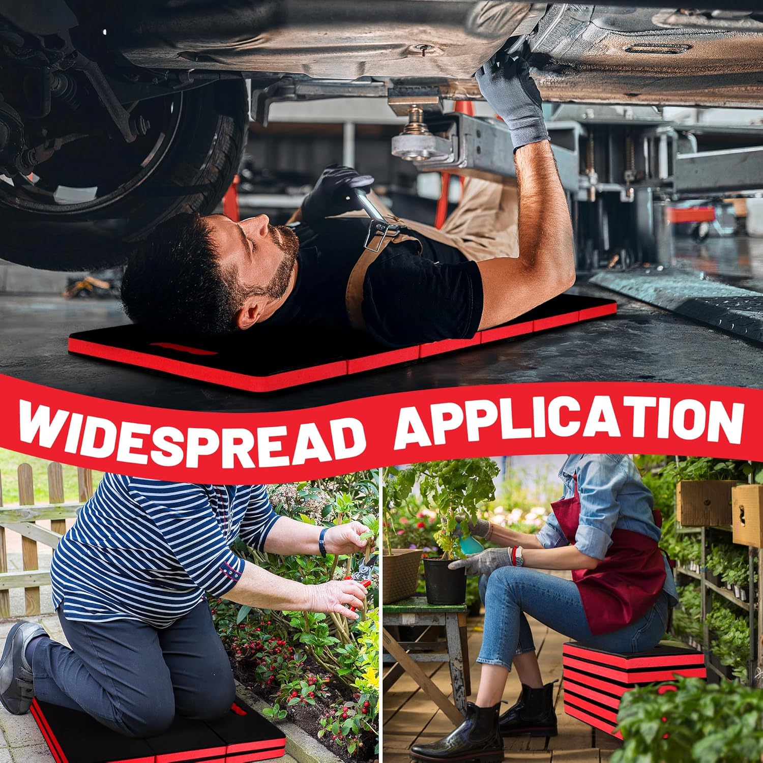 Extra Thick Kneeling Pad for Working Under Car, 47.2 * 17.7 * 1.2" Portable Foldable EVA Mechanic Mat for Garage, Gardening, Yardwork, Workshop, Red & Black