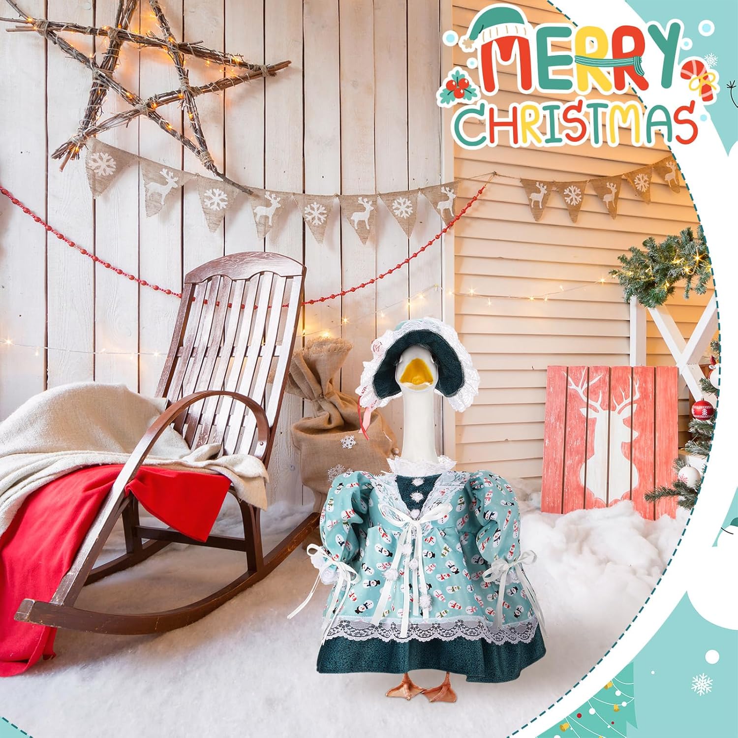 Suzile Snowman Goose Outfit Winter Dresses Christmas Clothes for 23" High Cement or Plastic Porch Goose Costume for Yard Lawn Outdoor Garden Patio Statue Xmas Holiday Decor