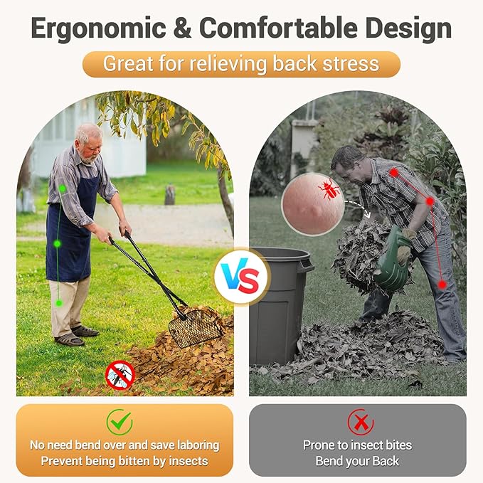 • No need to bend over - CAROD leaf collector rake with a long handle, it helps to grab falling leaves without bending over. The leaf grabber rake reduces back strain during yard work. An ideal and powerful garden tool for your yard work.