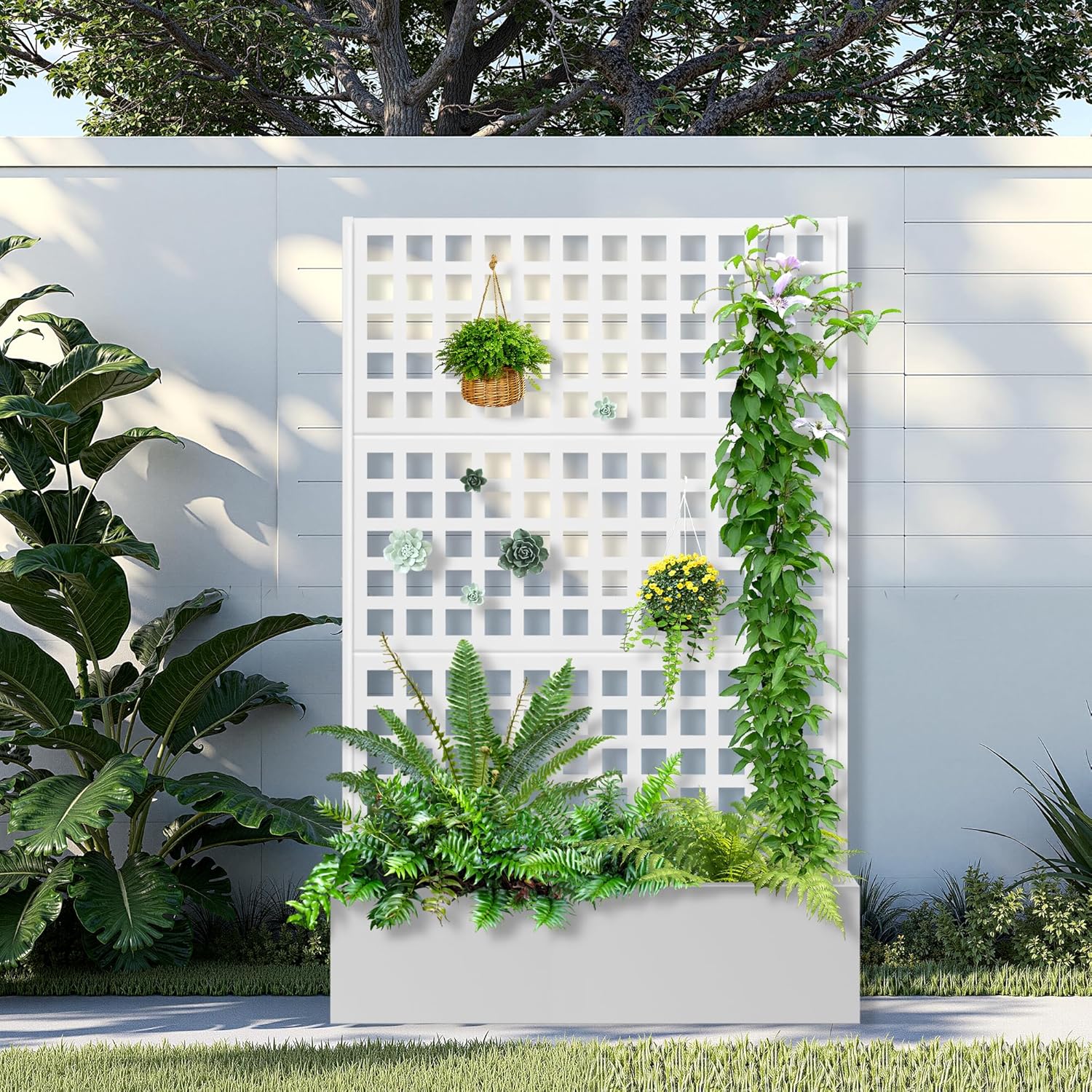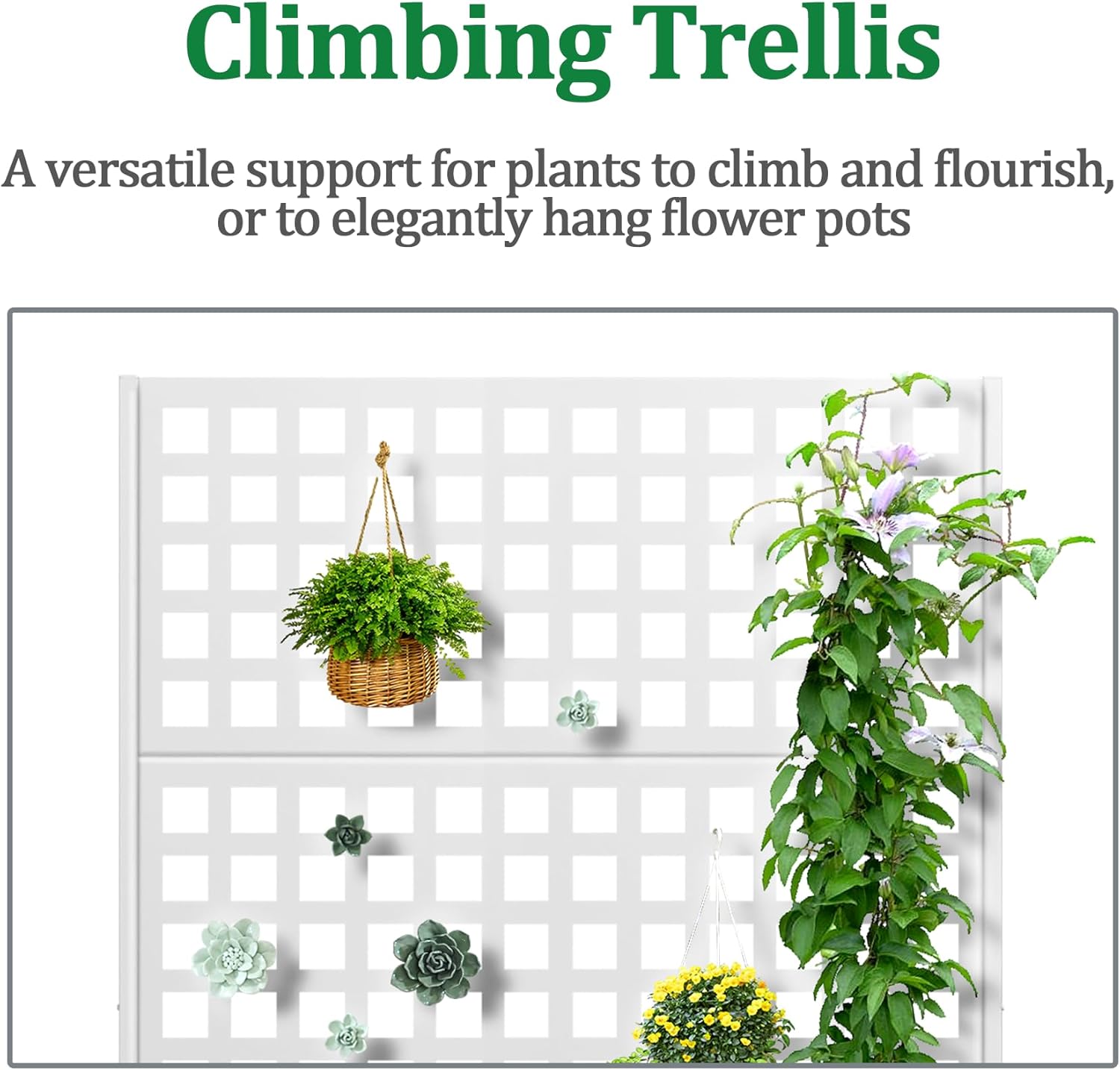 • Space-Saving Design: The planter box is combined with the trellis to offer a space-efficient and visually appealing gardening solution. The vertical design of the trellis optimizes planting space while preserving a compact footprint. The outdoor raised garden bed’s upright structure is perfect for those with limited space to create a charming garden on a terrace or in a small yard.