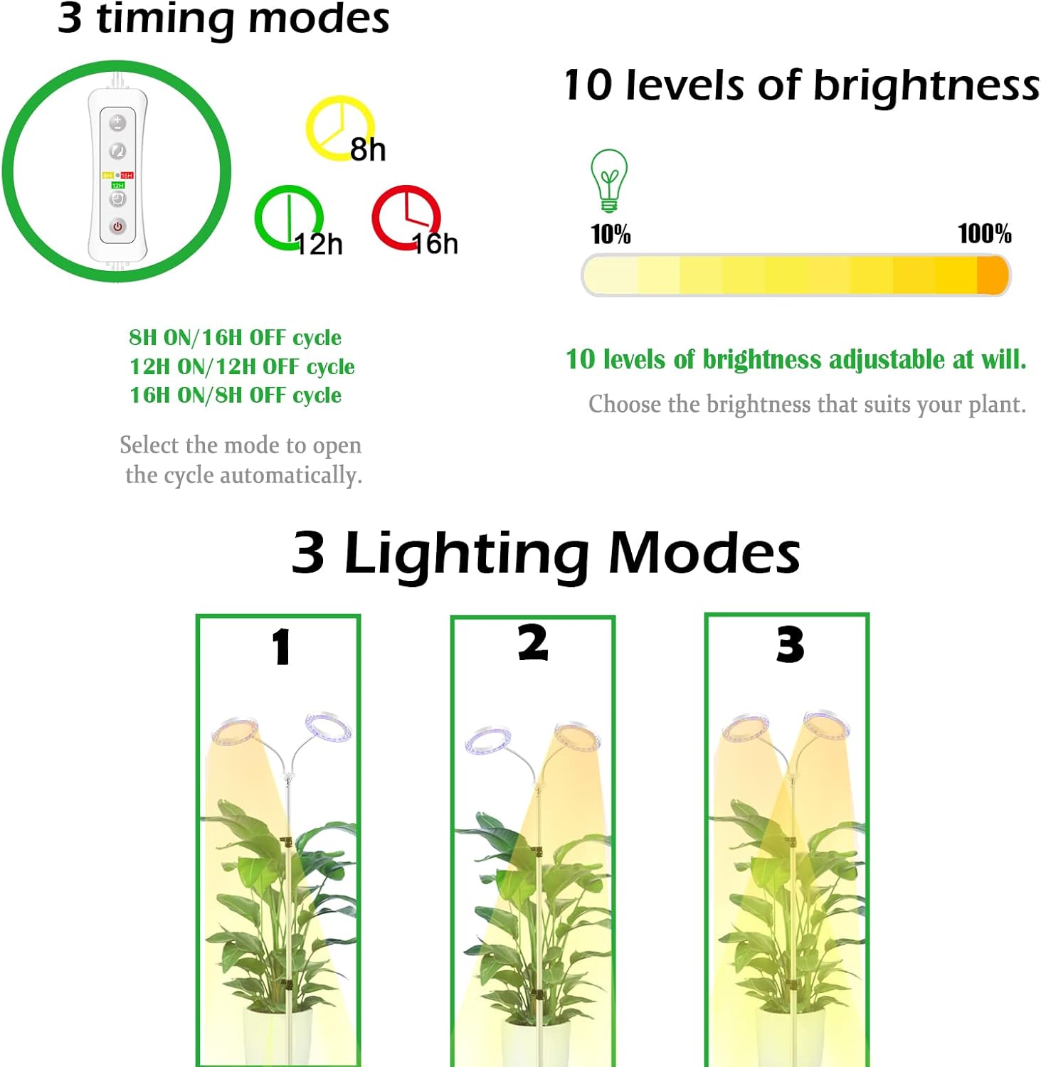 • Height adjustable and 10 Level Brightness: The height range is 36"-51",It also has 10 brightness settings, from 10-100% to meet each plant's lighting requirements at different stages.