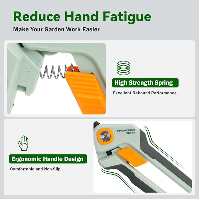 • 【Effortless Cuts Every Time】Equipped with a high-tension spring for reduced effort and ergonomic handles, these garden clippers offer a comfortable grip and reduce hand fatigue during extended use. This makes them ideal for a wide range of gardening tasks