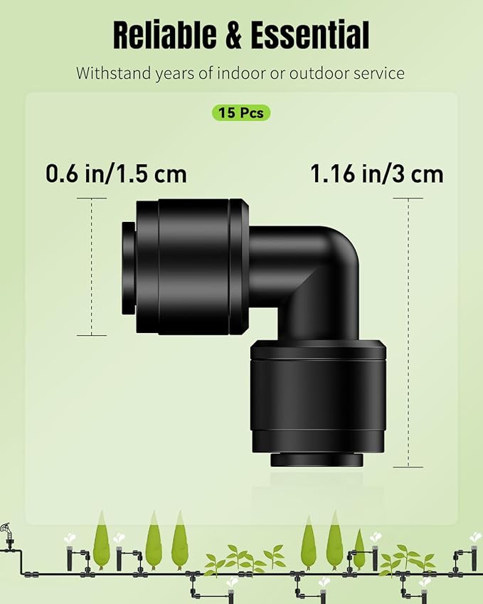 • Wide Application: Perfect 90-degree elbow fittings for extending water reach in any planting zone, including raised beds, vegetable gardens, greenhouses, patios, lawns, and more. Effortlessly bring life to every corner of your spacez