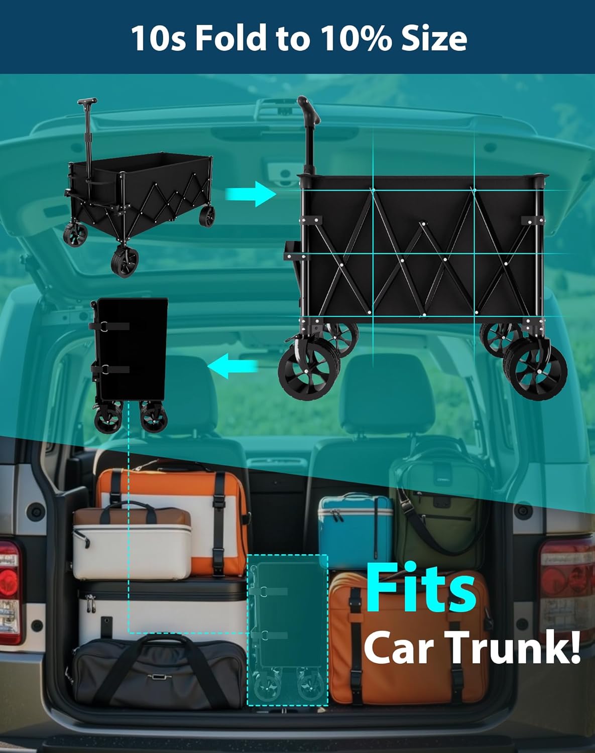 7.8 cu ft Extra Large Wagons Carts Foldable with 360lbs Weight Capacity Heavy Duty Beach Wagon with Big Wheels for Sand All Terrain Collapsible Folding Utility for Camping, Garden, Sports, Shopping