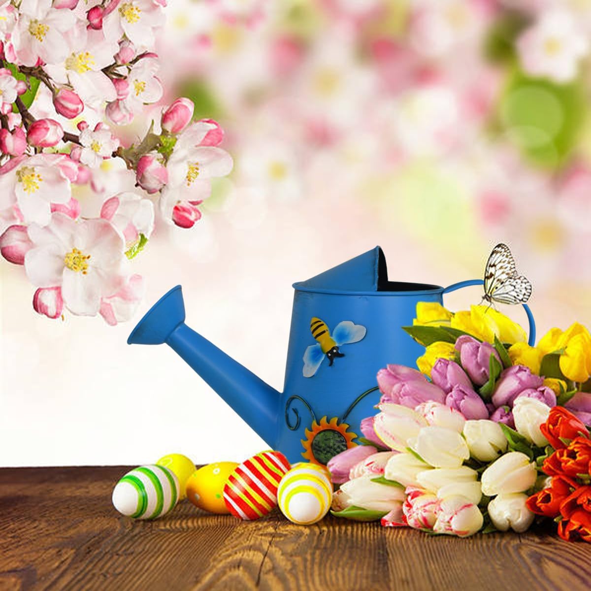 Decorative Sunflower & Bee Metal Watering Can (Vol: 4 Cups) | Small Blue Watering Can | Garden Décor Housewarming Gift for Mother Women Friends Gardeners
