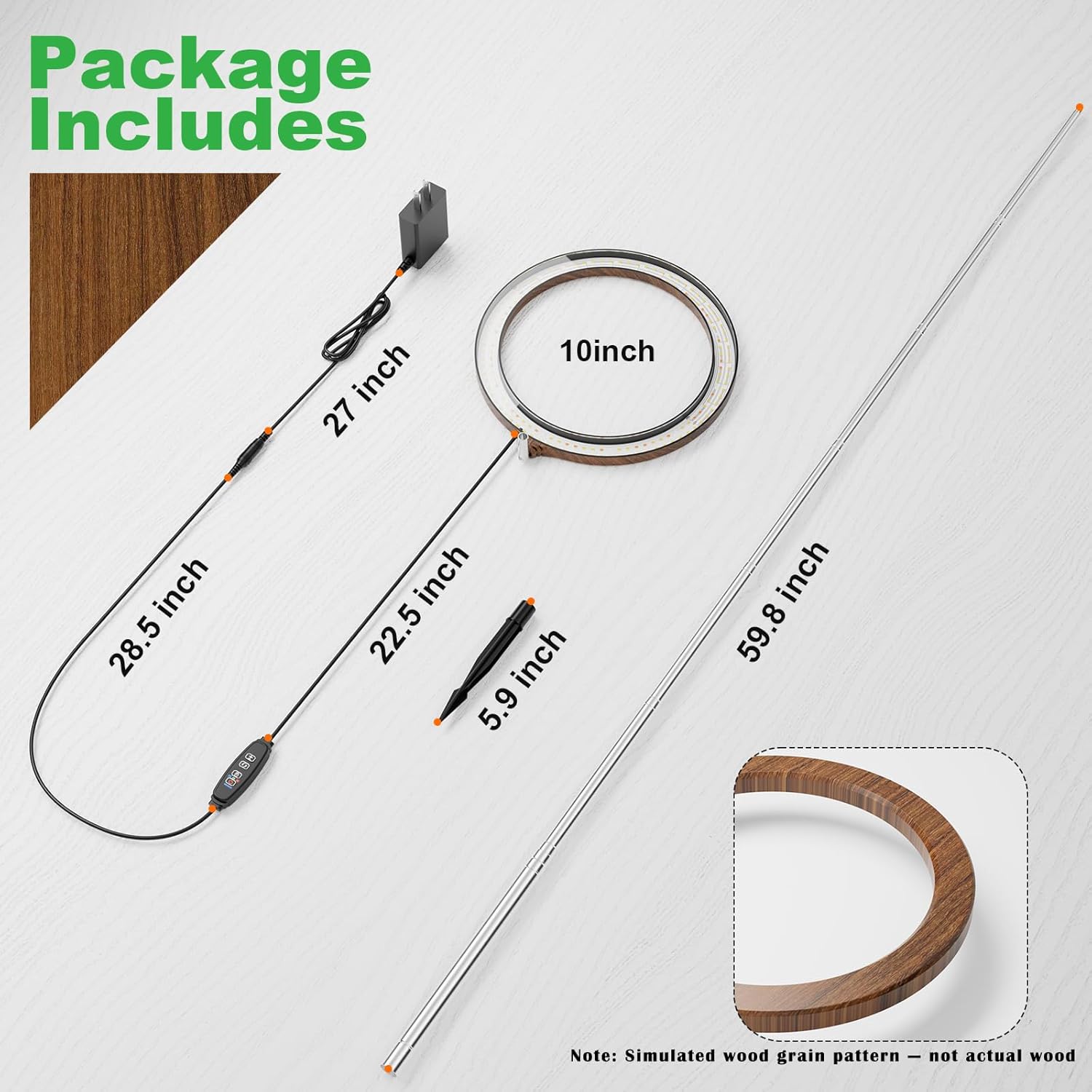 • 10" Black Wood Grain Grow light designed for large plant (Note: Simulated wood grain pattern — not actual wood), Full spectrum 380nm-800nm, 160 Leds ( 5000K/80 LEDS, warm white 3000K/40 LEDS, red/30 LEDS, blue/10 LEDS), Stronger lighting effects for more effective plant growth